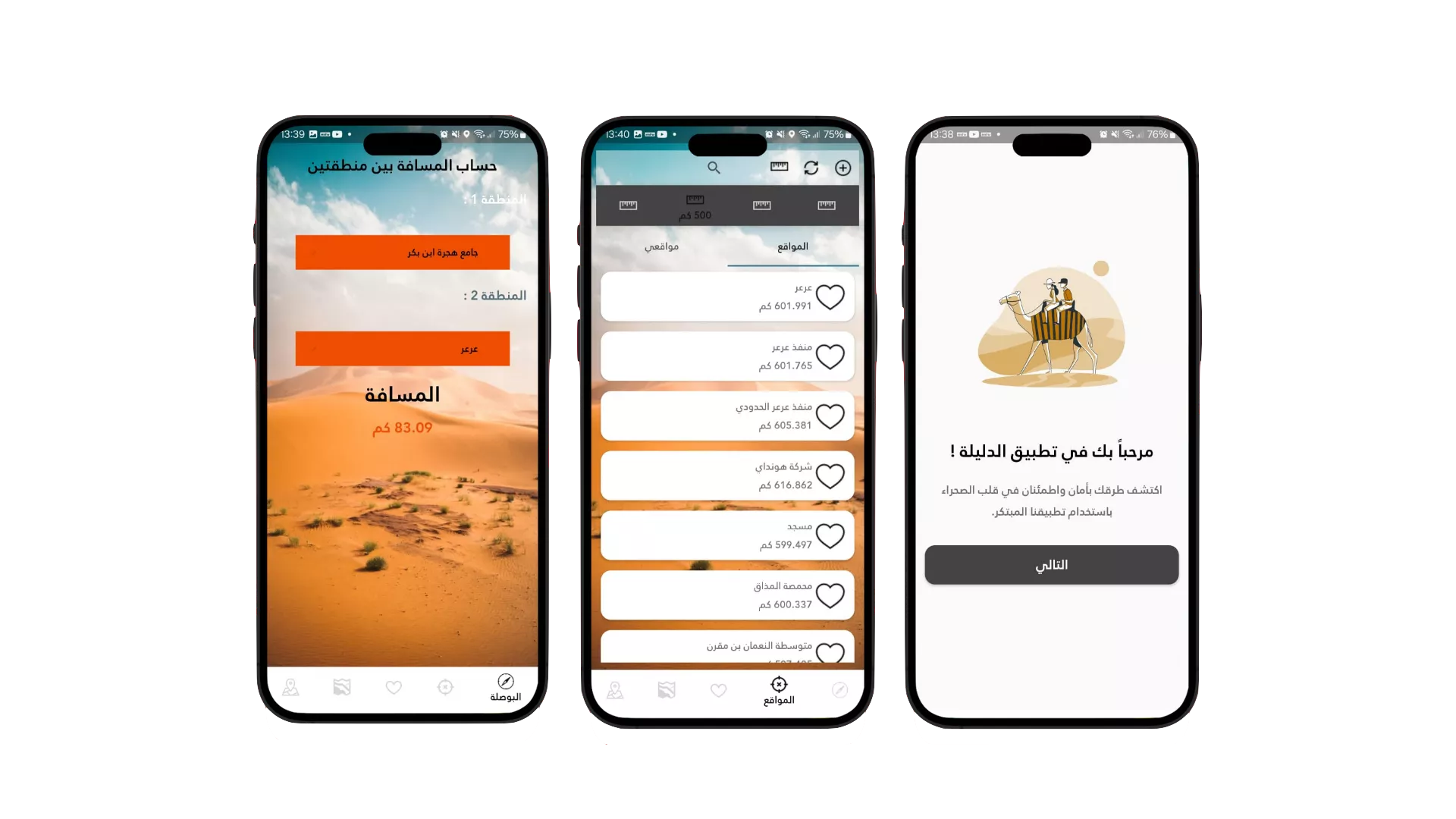تطبيق موبايل للسياح لاستكشاف الصحراء ومعالمها. يشمل معلومات تعتمد على الموقع وخرائط المسارات وأدلة تفاعلية.